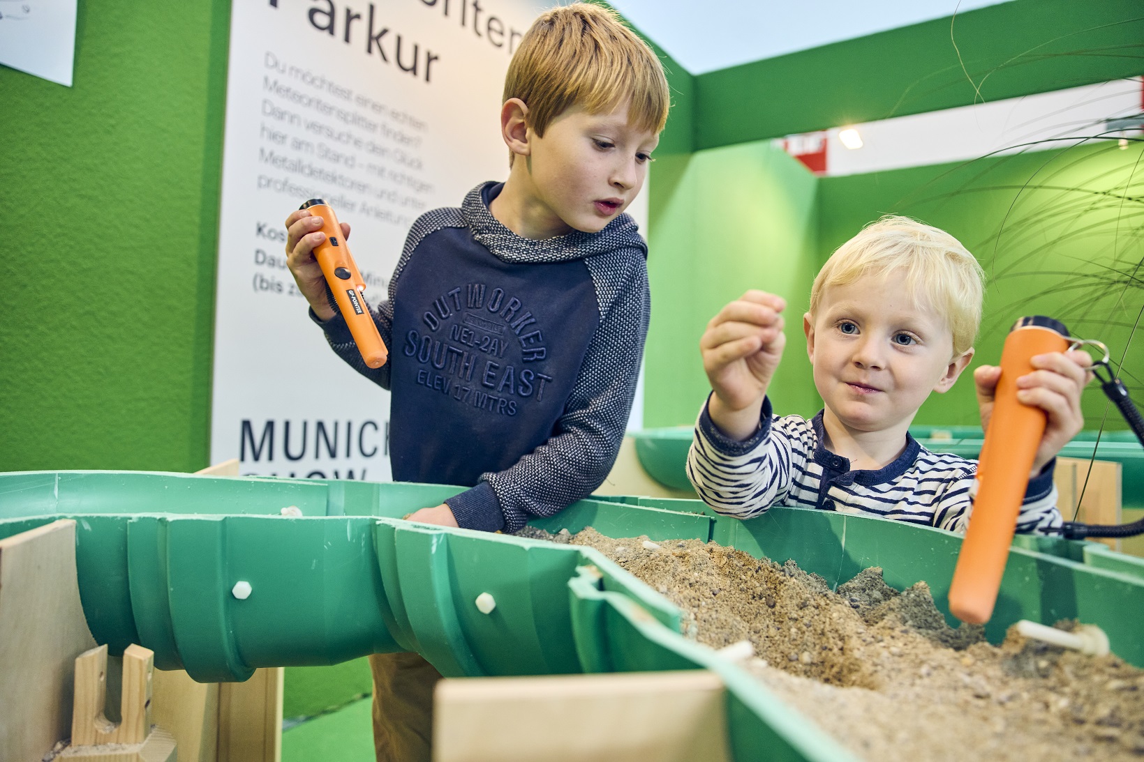 For this reason, fossilized shark teeth are found relatively often. At the Munich Show, children can go on a search themselves: with a shovel and sieve in the large sandbox, they can playfully discover how exciting paleontological discoveries can be. A little adventure for young fossil researchers.